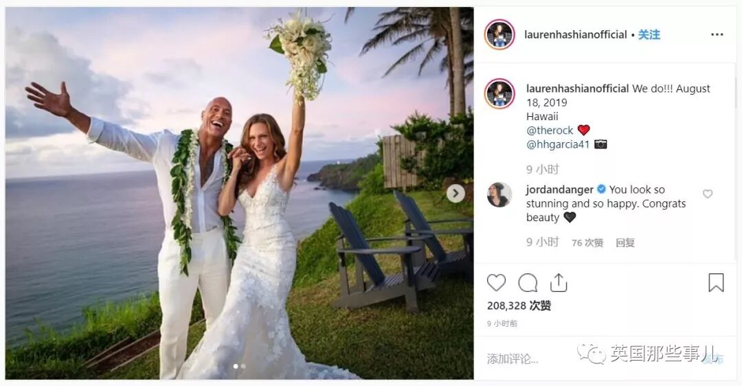 祝巨石强森和Lauren新婚快乐,