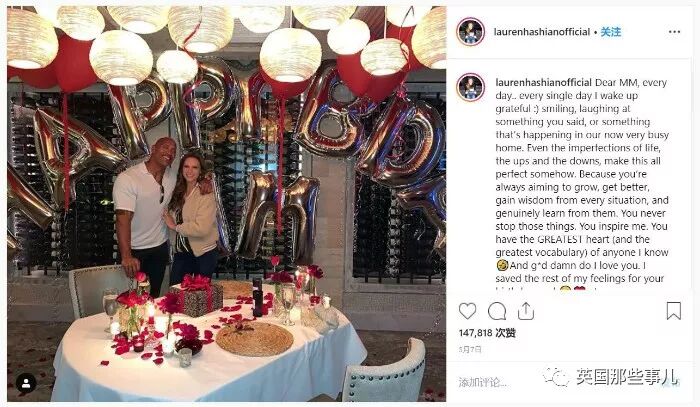 今年强森生日后的几天,Lauren在ins上发了帮强森庆生的照片,并深情配文,