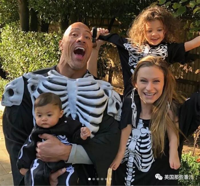 再看看另一种照片,也就是强森和两个女儿在一起的照片,画面马上变得无比温馨。