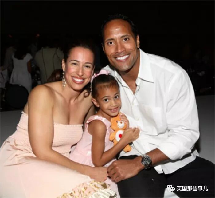 当时在强森身边,陪伴他一边参加摔跤比赛一边进军演艺圈的就是前妻和女儿两位女性,