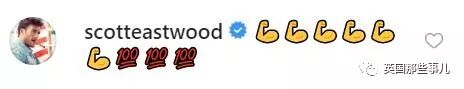 演员Scott Eastwood用一连串表情包表达祝贺,