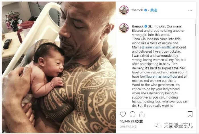 陪伴妻子分娩让强森体会到女性作为母亲的辛苦,他也在配文中对准爸爸们给出了建议,