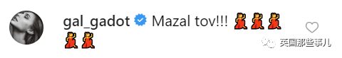 “神奇女侠”Gal Gadot用希伯来语写道:“恭喜。”