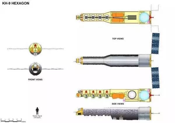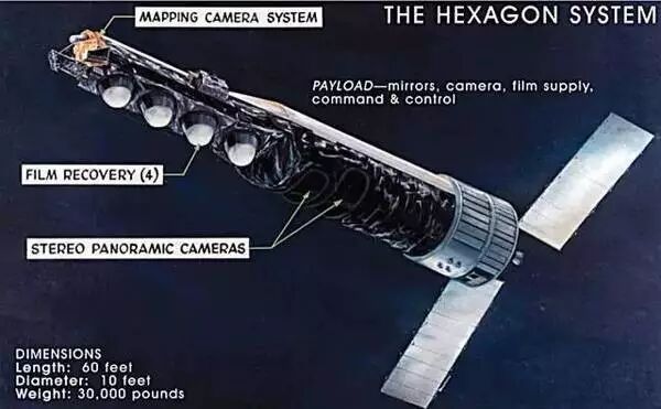 第一枚“六边形”间谍卫星于1971年6月15日发射入轨,外形上KH-9除了比其前辈们整整大了一号外,最大的区别在于卫星尾部安装的太阳能电池板。没有了电池的限制,更多的空间得以用来放置高性能摄像装置和返回载具。