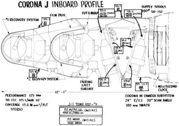 此时的间谍卫星和大家熟知的不同,由于照片处理技术的限制,科罗纳卫星必须将胶片以物理形式送回地面以便回收分析。当科罗纳卫星入轨并抵达目标上空后,其位于卫星中部,直径30厘米长1.5米的相机便开始拍摄,如果需要还可使用70度的广角镜头完成大面积的广角拍摄。拍摄完毕的胶卷随后被储存在卫星前端的返回载具内,在适当的时机与卫星分离并回收。