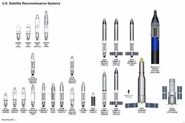 ▲“锁眼”系列间谍卫星全家福