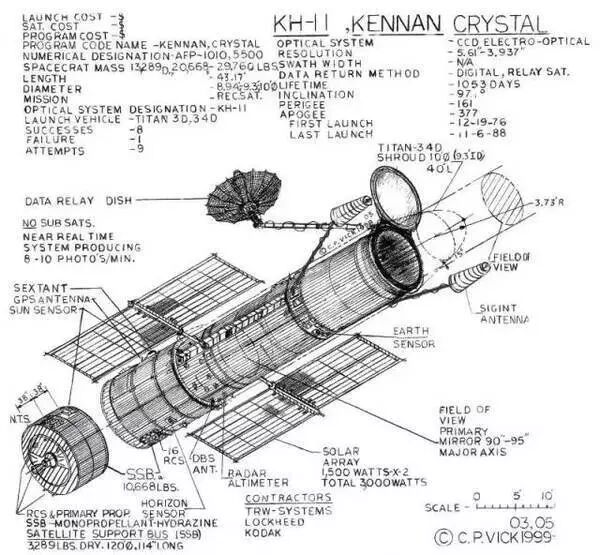 1976年12月19日,泰坦IIID型火箭从美国加利福尼亚州范登堡空军基地腾空而起,KH-11系列卫星的历史至此开始。如果在入轨后能对卫星拍照,估计很多人会把其误认为是14年后发射的哈勃太空望远镜。不过和哈勃不同,“迦南”间谍卫星不是“向上”聚焦宇宙尽头,而是“向下”紧盯着地球表面。携带着当时最先进的电子光学观测器械和多重无线电加密装置,作为次时代产物的“迦南”将彻底改变人们对间谍卫星的所有认知。