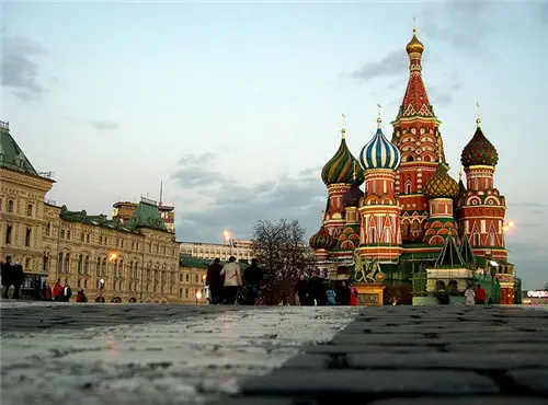 圣瓦西里大教堂建于1555-1561年,为庆祝伊凡雷帝收复喀山而建,是俄罗斯的重要象征。建筑设计形如升腾而起的火焰,这在俄罗斯建筑设计中是没有类似的。