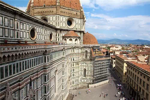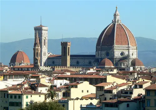 哥特式的圣母百花大教堂是全球最大的天主教教堂之一,非常壮观。天才建筑师布鲁内莱斯基仿造罗马万神殿设计的教堂圆顶,是古典艺术与当时科学的完美结合,连教皇也惊叹为“神话一般”。很多人都认为它是自己见过的最美丽的教堂。