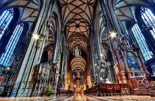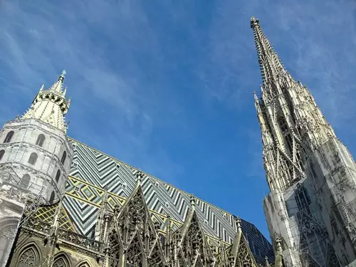 教堂建造于14至16世纪之间,是维也纳的标志性建筑,也是奥地利最为重要的哥特风格建筑。北塔有一部快速电梯驶向观景台和普默林,这是奥地利最大的大钟。南塔有343级阶梯,可通往72米高的塔楼。昔日的地下墓穴里安葬着主教们的棺材。教堂内还珍藏着很多艺术品, 有些艺术珍品只有导游带领才能参观, 例如弗利德里西三世皇帝的红色大理石棺,1500年创作的牧师布道坛和“维也纳新城圣坛”。