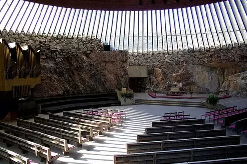 由著名建筑师Timo和Tuomo Suomalainen设计的岩石教堂在欧洲闻名遐迩,是赫尔辛基最具特色、最受欢迎的景点之一。教堂从一整块岩石中开凿而成,设计极为新颖巧妙。这里除了举行宗教仪式,还是婚礼和各种音乐会的首选地。