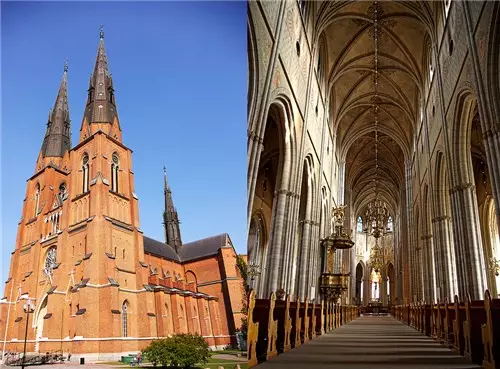 哥特式的大教堂位于乌普萨拉的市中心,是地标性的建筑,曾是瑞典国王举行加冕典礼的圣地。它始建于1287,重建于1885-1893年,教堂的双塔高达118.7米,是斯堪的纳维亚最大的教堂,也是瑞典规模最大、最壮观的教堂。它高大的塔尖耸入云霄,外部呈现红色,内部金光闪闪,氛围肃穆而庄严。