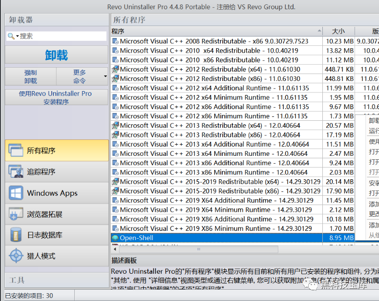 一款国外优秀的专业软件卸载程序,有猎人模式、安装跟踪监视改动、强制卸载扫描分析、启动项管理、使用痕迹清理、垃圾文件清理、浏览器垃圾清理等诸多功能。